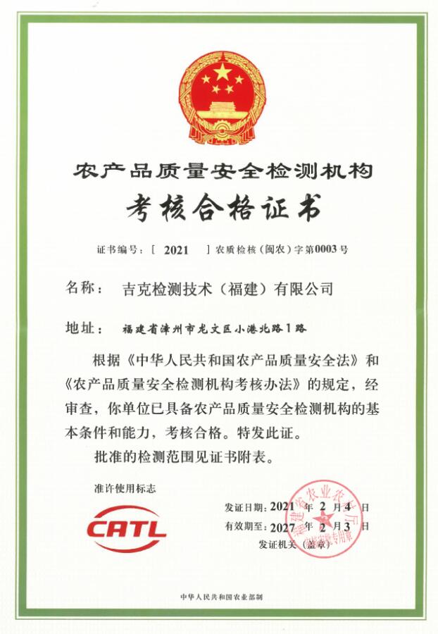 吉克檢測(cè)技術(shù)(福建)有限公司,位于福建省漳州市龍文區(qū)小港北路1號(hào),于2019年8月注冊(cè)成立,是一家獨(dú)立的第三方檢測(cè)公司。公司已經(jīng)通過檢驗(yàn)檢測(cè)機(jī)構(gòu)計(jì)量認(rèn)證(CMA)、農(nóng)產(chǎn)品質(zhì)量安全檢測(cè)機(jī)構(gòu)資質(zhì)認(rèn)證(CATL),獲得中國(guó)合格評(píng)定國(guó)家認(rèn)可委員會(huì)(CNAS)認(rèn)可。公司本著“嚴(yán)謹(jǐn)、規(guī)范、高效、協(xié)作”的原則和對(duì)客戶及社會(huì)高度負(fù)責(zé)的精神,充分利用本公司優(yōu)質(zhì)的檢測(cè)環(huán)境、先進(jìn)的檢測(cè)設(shè)備和專業(yè)的技術(shù)人員,第一時(shí)間為客戶提供科學(xué)、公正、準(zhǔn)確的檢驗(yàn)檢測(cè)報(bào)告。 公司實(shí)驗(yàn)室面積1100多平方米,儀器設(shè)備兩百多臺(tái)(套),固定資產(chǎn)一千多萬元,在職員工31人,技術(shù)人員中的中高級(jí)職稱及同等能力人數(shù)占60%以上。我們的服...